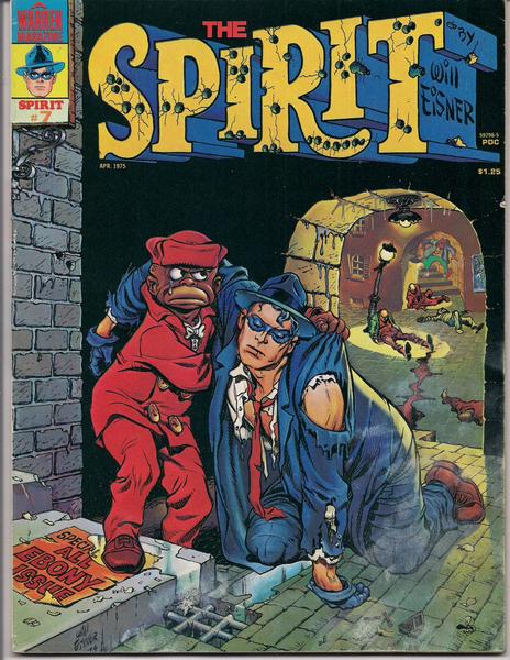 The Spirit is one of the first heroes to demonstrate this power, while never named as a superpower and this power plus his lack of a superhero costume, except for the mask, makes him an everyman that leads to reader identification. Superhero/supervillain minimalism when it comes to costume and characterization of those who can take a licking and keep on ticking seems to work in comic books. The Spirit bounces back from his beaten state shown below in The SPIRIT #7 (Warren).