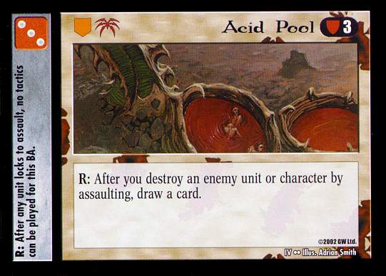 Acid Generation – The ability to generate acid. The acid can be manifested through touch or as a spray. Acid Generation is also known as Acid Creation, and Acid Secretion.