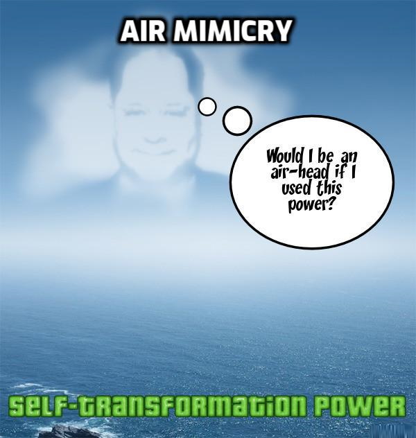 Air Mimicry – The character’s body is composed of air. Air Mimicry is also known as Air Physiology, and Sublimation.