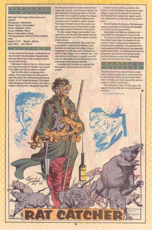 Ratcatcher (DC) can can control rather than communicate with rats and appears in DC Who’s Who Update ’88 #3.