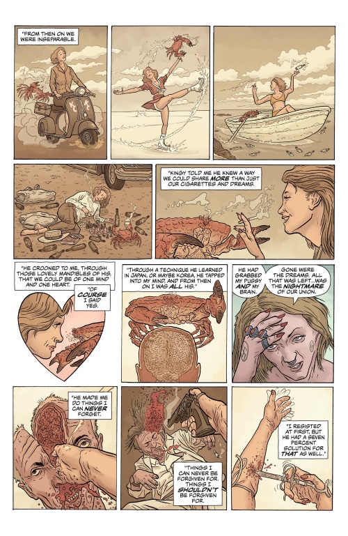 The King Crab is one species and controls a human woman so this qualifies as interspecies mind control in Shaolin Cowboy: Who’ll Stop the Reign #4 (Dark Horse).
