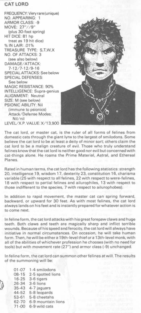 Cat Lord can turn into any type of feline in TSR 2016 Monster Manual II.