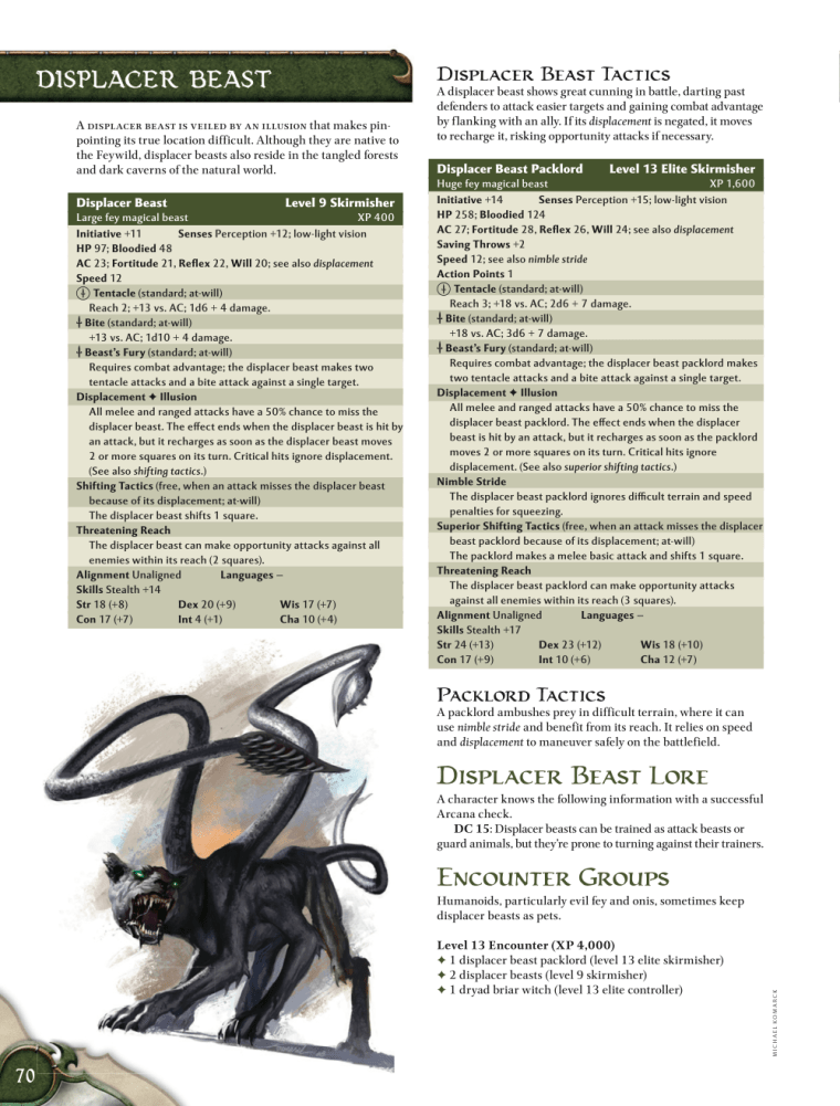 Displacer Beast – D&D 4th Edition – Monster Manual 1