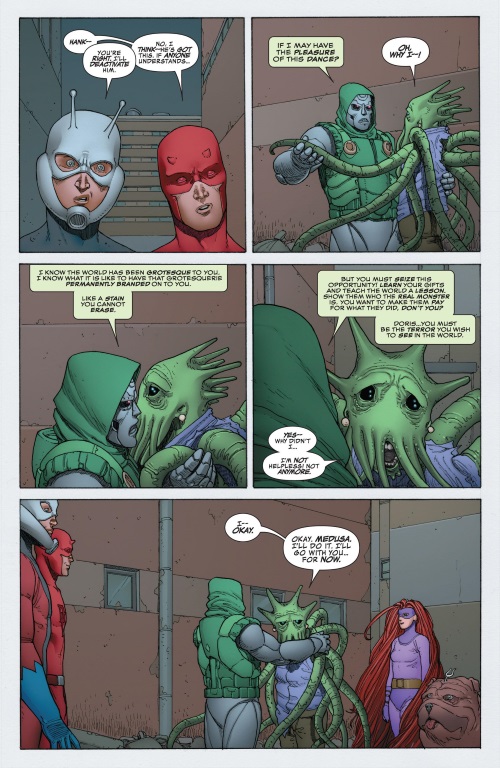 Doombot (Marvel) points out to a recently tentacled character that being a terror has advantages in Avengers A.I #7.
