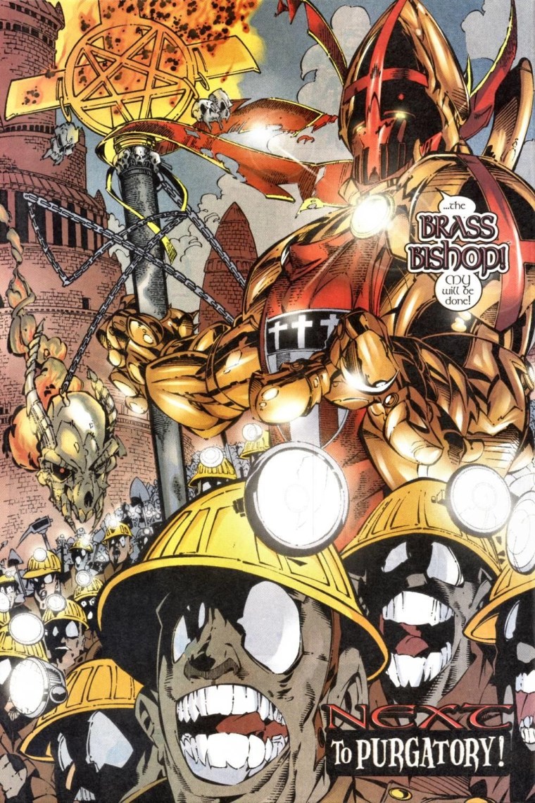 The Brass Bishop (Marvel) uses magic armor to protect his soul from being appropriated by Mephisto (Marvel) in Alpha Flight V2 #15.