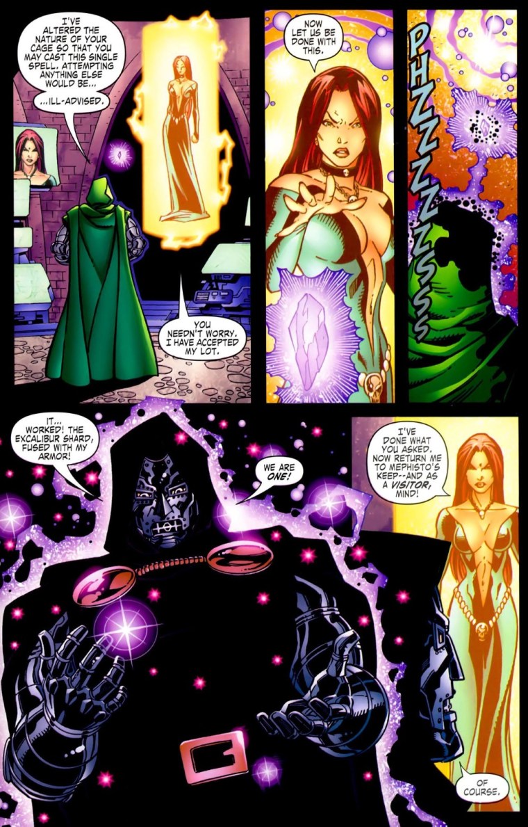 Doctor Doom (Marvel) adds magic to his armor with a shard of Excalibur in Iron Man – Legacy of Doom #2.