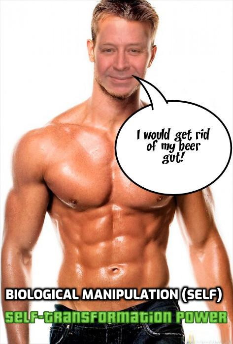 Biological Manipulation (self) – This is the ability to control one’s own biological make-up. Biological Manipulation (self) is also known as Anatomy Manipulation, Body Manipulation, Corporikinesis and Self-Manipulation.