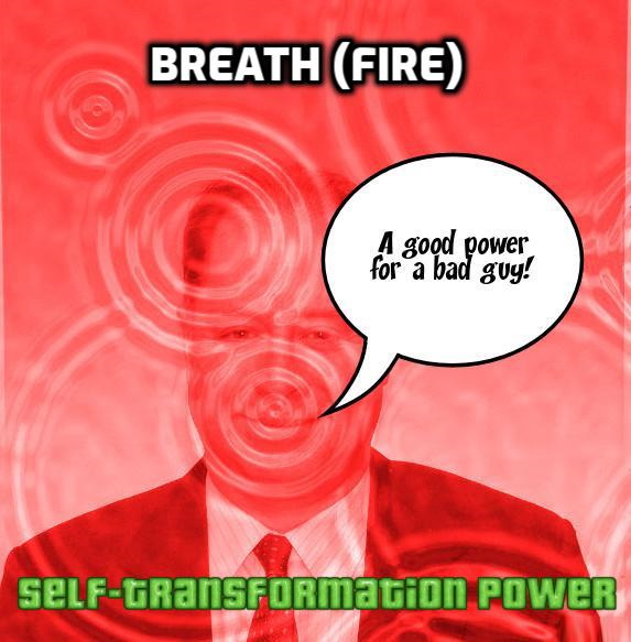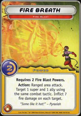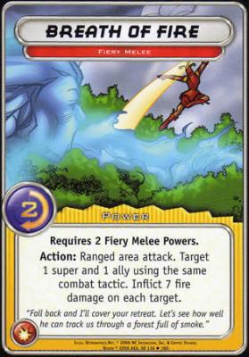 Breath (fire) – Fire breathing is a subset of fire manipulation but is so visceral and prominent that this power deserves its own entry. Breath (fire) is also known as Fire Breath, Fire Breathing, Flame Breath, Flaming Breath, Incendia Respiro, Pyric Exhalation, and Pyrokinetic Breath.