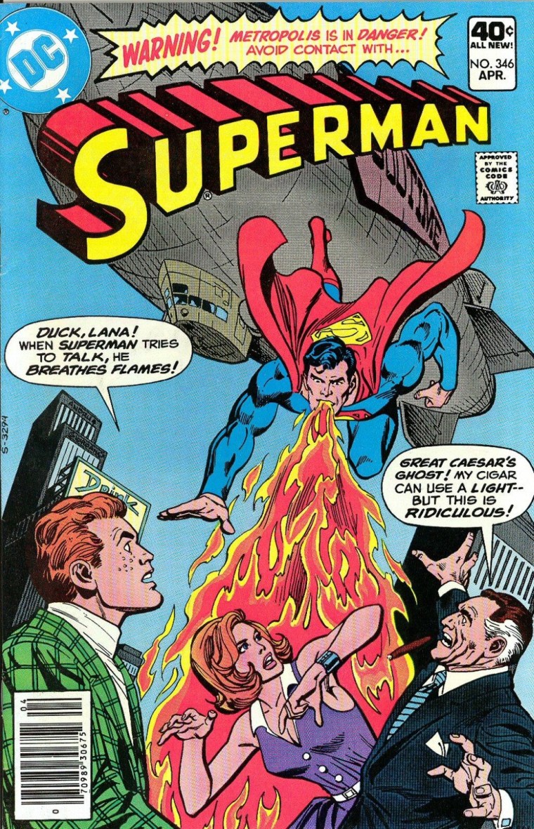 Superman (DC) has freezing therefore his imperfect duplicate Bizarro (DC) must have flame breath but actually doesn’t show this power until Superman V1 #306.