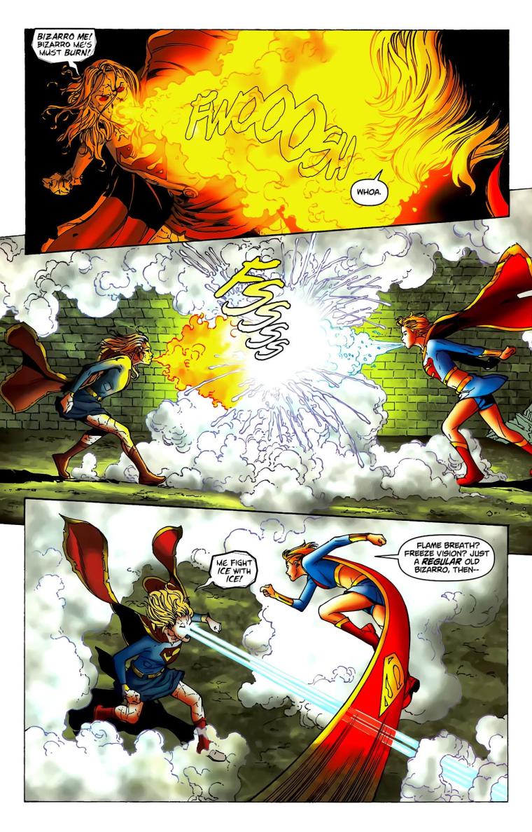 Bizarro Girl (DC) demonstrates flame breath for the first time in Supergirl V5 #54 (2010).