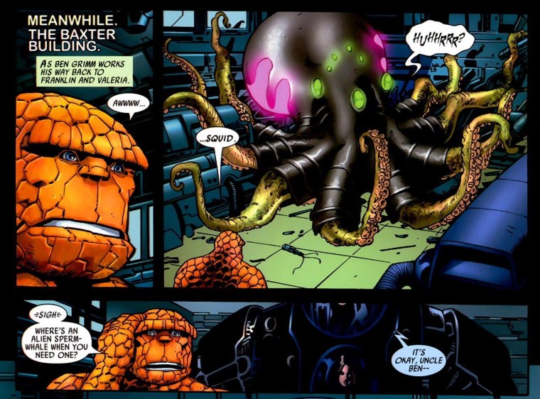 The Thing (Marvel) has to deal with a one-shot cephalopod from the Negative Zone in Secret Invasion – Fantastic Four #2.
