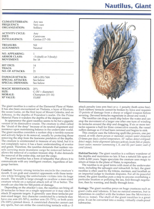 Giant Nautilus – TSR 2145 Monstrous Compendium Annual Volume 1