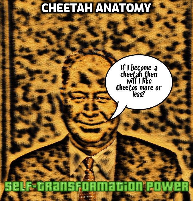 Cheetah Anatomy – The character has the form and/or characteristics of a cheetah. Similar to (179) Feline Anatomy, (255) Lion Anatomy and (449) Tiger Anatomy. Subcategory of (268) Mammalian Anatomy.
