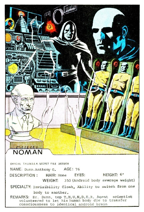 Noman has an invisibility cloak as seen in T.H.U.N.D.E.R. Agents #3 (Tower).