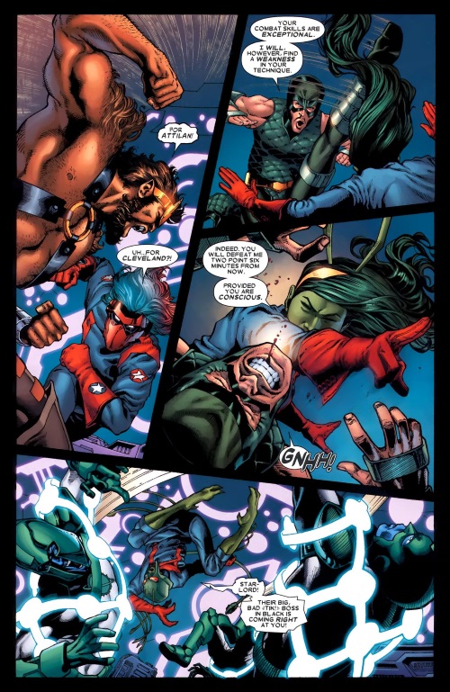 Mantis (Marvel) shows once again that Karnak’s weakness detection is good in a fight but combat clairvoyance is better!