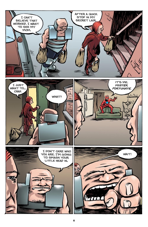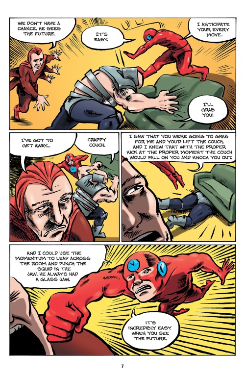 Mister Fortunate (Dark Horse) demonstrates that combat clairvoyance is better than super strength in Astounding Villain House #1.