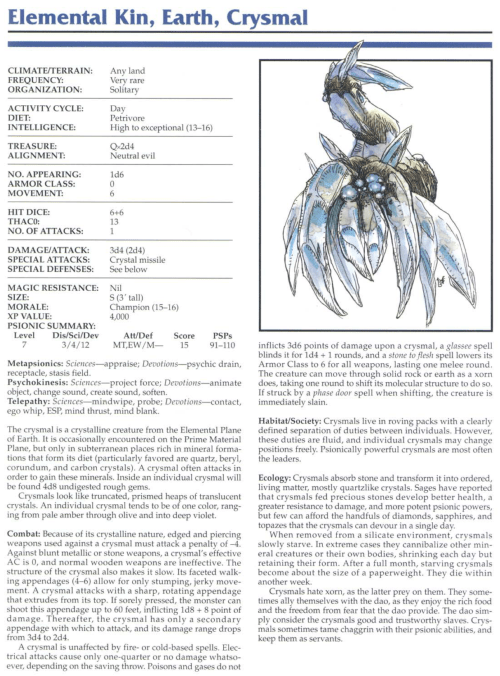 Crysmal – TSR 2145 Monstrous Compendium Annual Volume 1