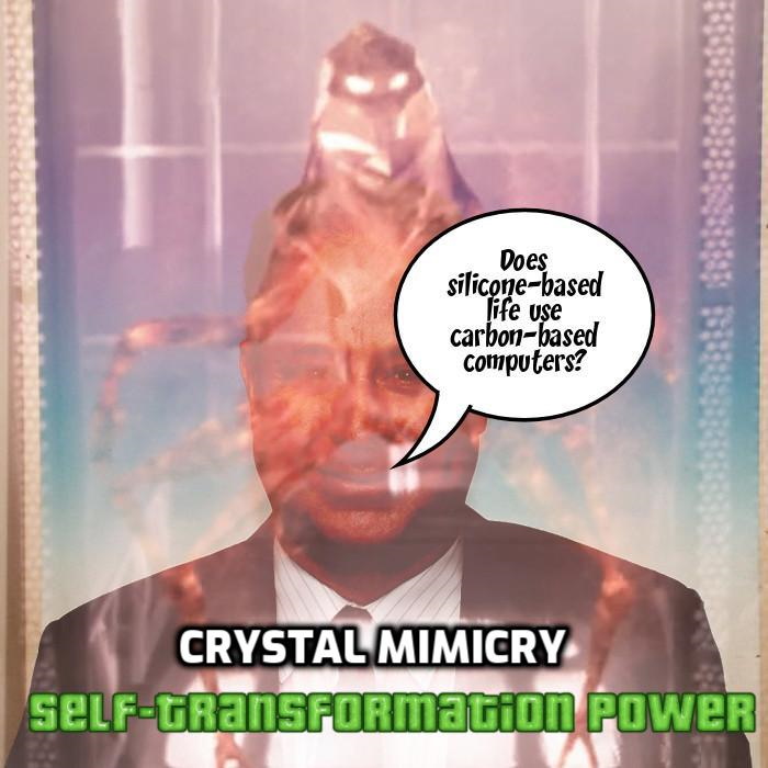 Crystal Mimicry – The ability to have a crystal body. Crystal Mimicry is also known as Gem Mimicry, Gem Physiology, Jewel Mimicry, and Jewel Physiology.