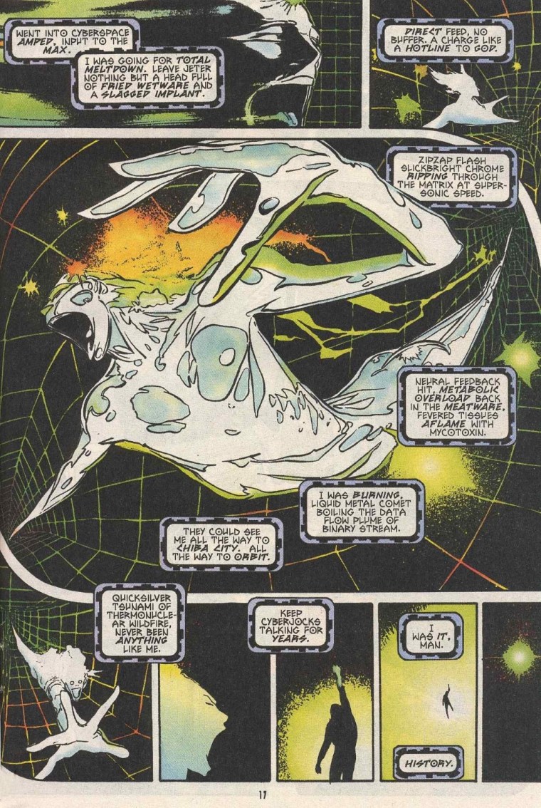 In Injection (Image), Warren Ellis describes an AI that lives in the internet (Injection V1).