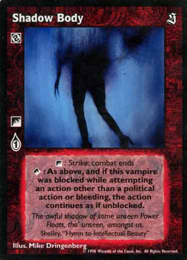 The Shroud (Marvel) creates a shadow that lacks mass and cannot be used to penetrate or bludgeon opponents (Official Handbook of the Marvel Universe V1 #10).