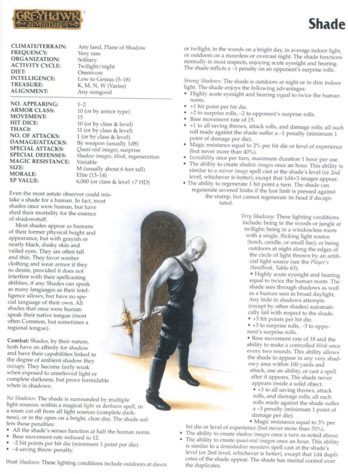 Shade – TSR 2173 Monstrous Compendium Annual Volume 4