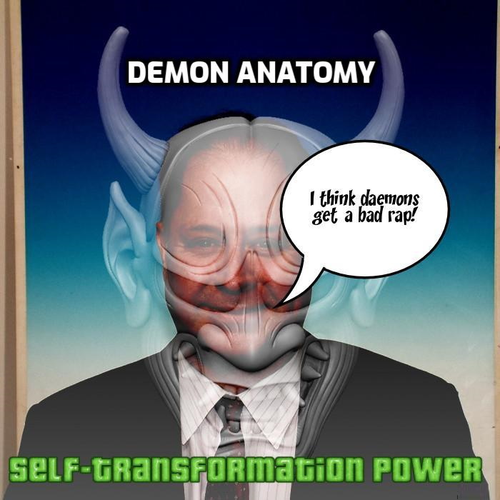 Demon Anatomy – The character has the form and/or characteristics of a demon and/or devil. Demon Anatomy is also known as Daemonium Physiology, Demon Mimicry, Demon Physiology, Demonic Mimicry, Demonic Physiology, Devil Mimicry, Devil Physiology, and Devil Trigger (Devil May Cry).