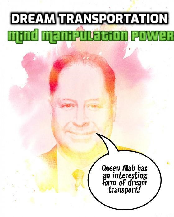 Dream Transportation – The ability to enter a dream dimension. This dream dimension is ontologically “real”. Dream Transportation is also known as Dream Portal, Dream Teleportation, Dream Transportation, Dream Travel, Nightmare Portal, Nightmare Teleportation, Nightmare Transportation, Nightmare Travel, Oneiric Geo-Leaping, Oneiric Phase-Jumping, Oneiric Spatial Movement, Oneiric Teleportation, Oneiric Tele-Transportation, Oneiric Translocation, Oneiric Transportation, Sleep Teleportation, Sleep Transportation, Sleep Travel and Sleep Portal.