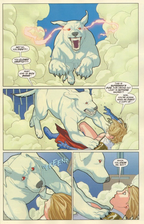 Even a clone of Krypto (DC) loves a relative of Superman in Power Girl V2 #20.