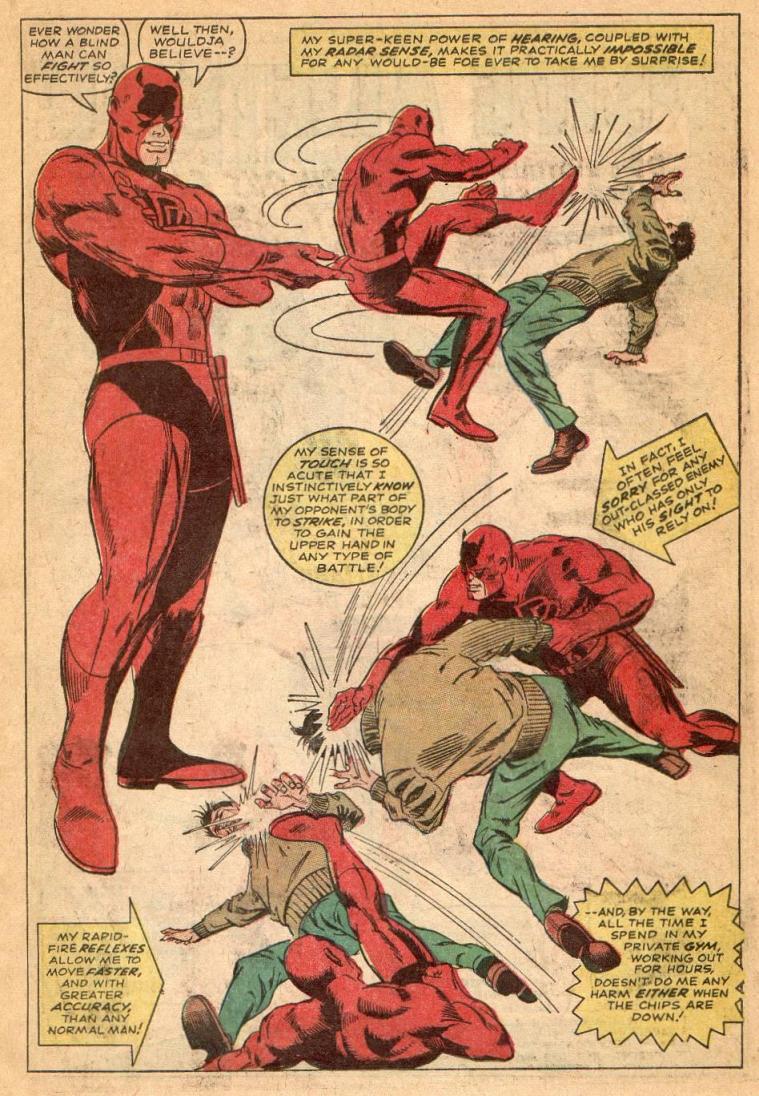Daredevil (Marvel) probably has both radar sense and echolocation but has to depend on background noise unlike the Man-Bat. Radar sense probably involves emitting some sort of electromagnetic pulse from the brain. Ambient sound can confuse echolocation. Ambient sound would not affect radar sense. In the movies, Daredevil is more confused by background sound. In the comic books, Daredevil is not as confused by background sound but loud sound can hurt him since his hearing is super sensitive. In one of the earliest explanations radar sense is mentioned and superhuman hearing but not echolocation (Annual Daredevil V1 #1).