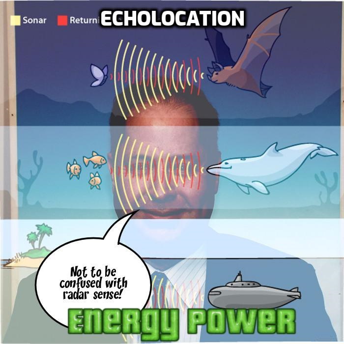 Echolocation – Echolocation is the use of reflected sound to figure out the environment. Echolocation is the bat equivalent of sonar. Echolocation is not (365) Radar Sense.