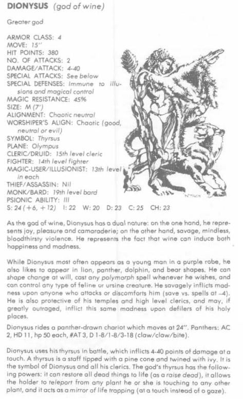 Greek – Dionysus – AD&D Legends & Lore 1984