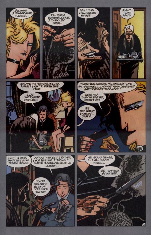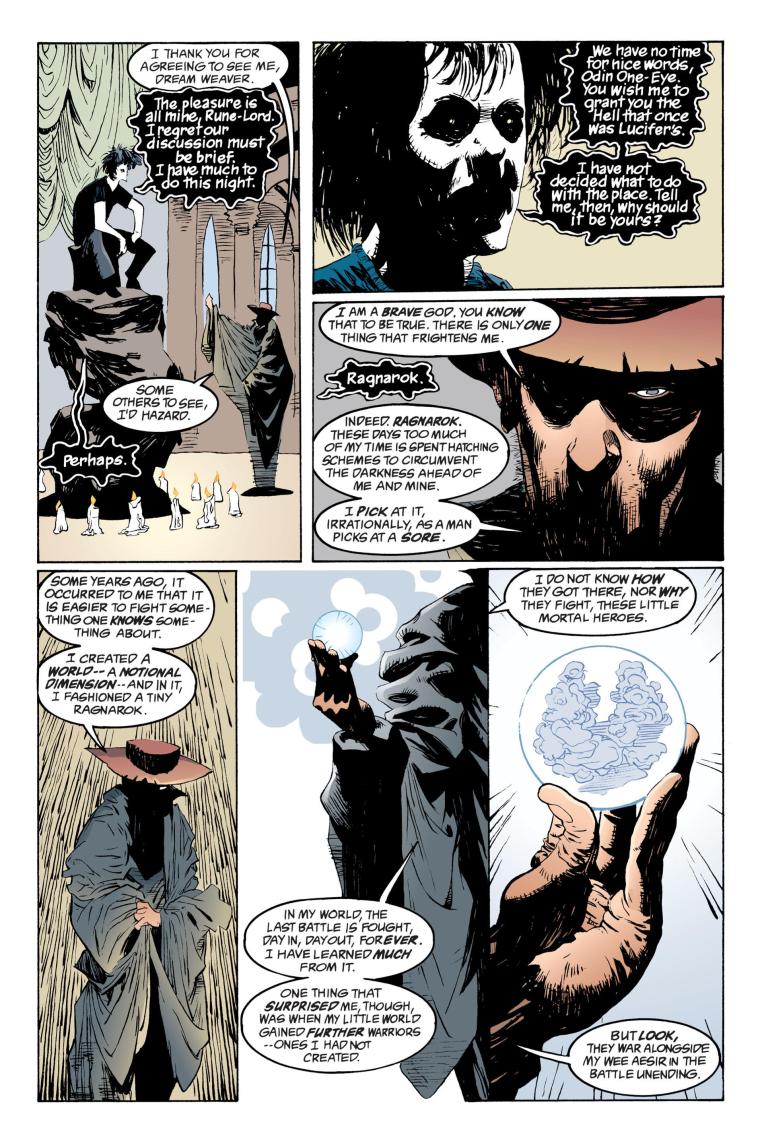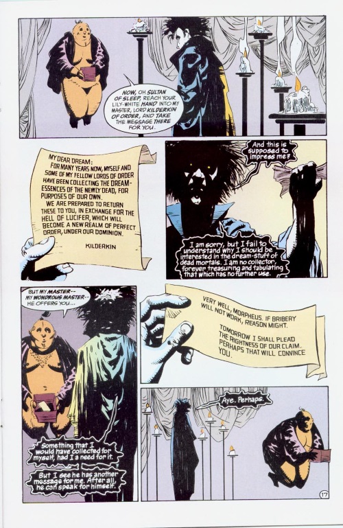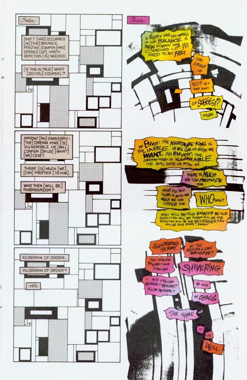 Lords of Chaos and Order (DC) demonstrate wildly different cognition and communications styles in Sandman #3 (Vertigo).