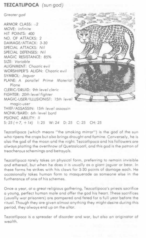 Central America – Tezcatlipoca – AD&D Legends & Lore 1984