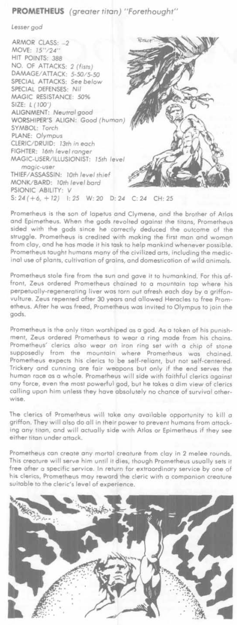 Greek – Prometheus – AD&D Legends & Lore 1984