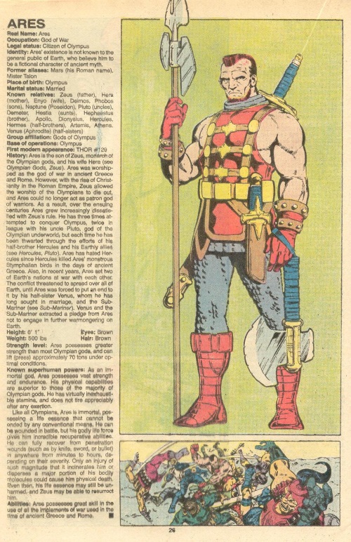 Greek – Ares (Marvel) – Official Handbook of the Marvel Universe V2 #1