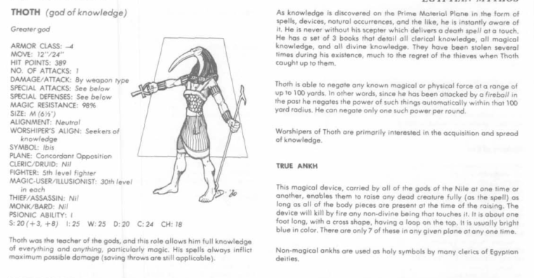 Egypt – Thoth – AD&D Legends & Lore 1984