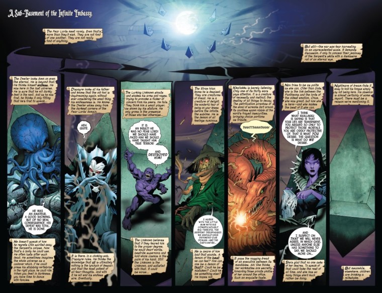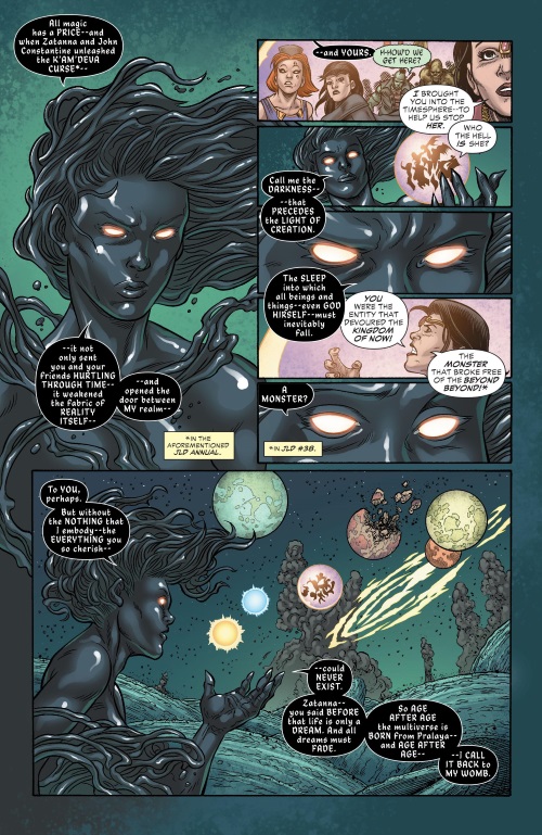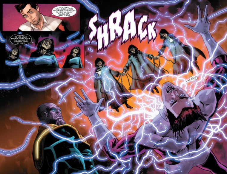 The Sisters of Eternity manipulate the Phoenix Force, sci-fi concept rather than mystical concept, with ease in Thanos V2 #12. The DC Three witches would never do something like this, The DC Three Witches are powerful and operates in the shadows, dreams and houses of mystery and secrets not at the center of the cosmos. I think this shows that DC tries to keep the mystical side of their universe separate with the Vertigo imprint while Marvel combines sci-fi and mystical sides of their universe with a “cosmic” perspective.