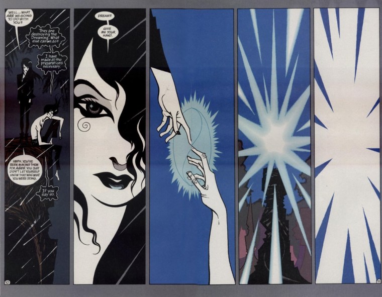 Lords of Chaos and Order (DC) demonstrate wildly different cognition and communications styles in Sandman #3 (Vertigo).