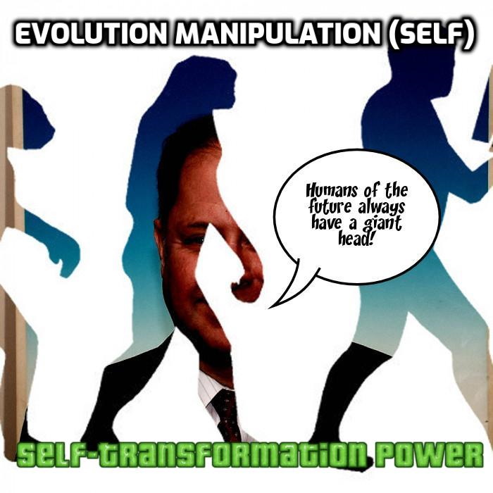 Evolution Manipulation (self) – The ability to control one’s own evolution. Also known as Evolution, Evolutionary Process, Metamorphosis and Ultimatized.