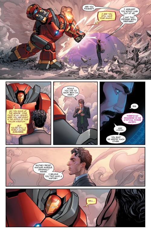 As a prelude to the Infamous Iron Man, Doctor Doom have a force field competition. In Invincible Iron Man V2 #2, Doctor Doom shows his mystic force fields can take on anything Iron Man can dish out.