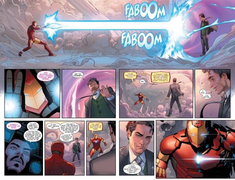 As a prelude to the Infamous Iron Man, Doctor Doom have a force field competition. In Invincible Iron Man V2 #2, Doctor Doom shows his mystic force fields can take on anything Iron Man can dish out.