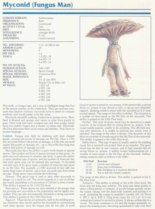 The myconids in Dungeons & Dragons are a race of mushroom people.