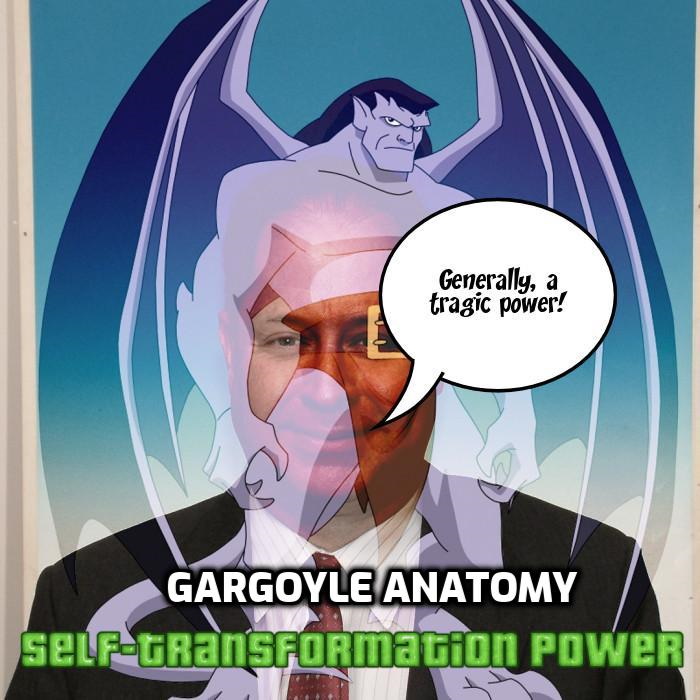 Gargoyle Anatomy – The character has the form and/or characteristics of a gargoyle. Gargoyle Anatomy is also known as Gargoyle Body, Gargoyle Form, Gargoyle Mimicry and Gargoyle Physiology.