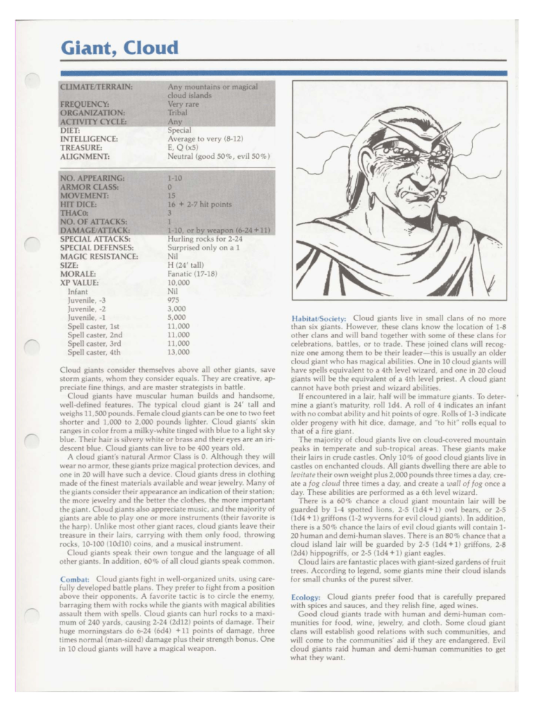 Cloud Giant – TSR 2102 MC1 Monstrous Compendium