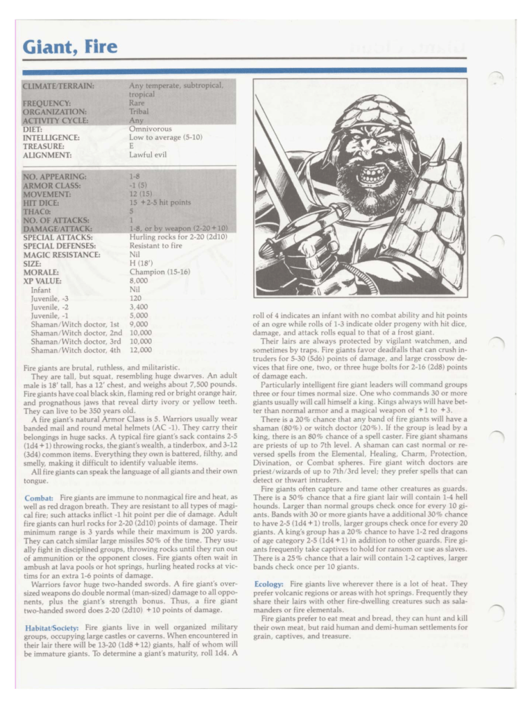 Fire Giant – TSR 2102 MC1 Monstrous Compendium