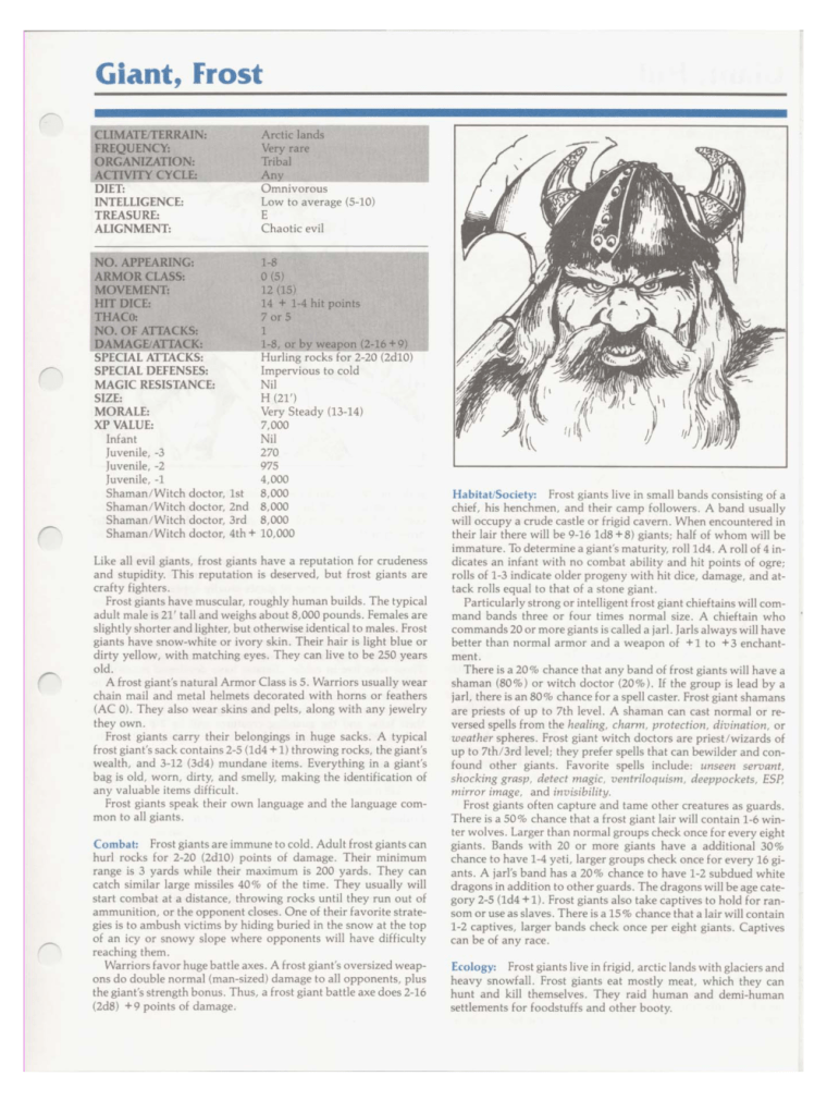 Frost Giant – TSR 2102 MC1 Monstrous Compendium