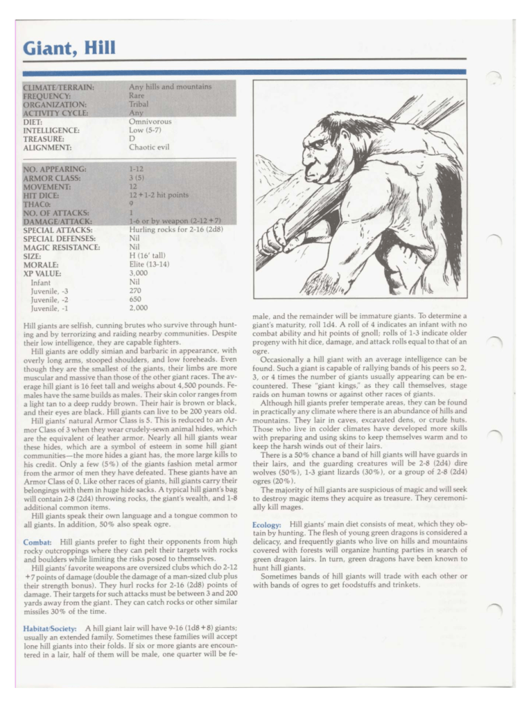 Hill Giant – TSR 2102 MC1 Monstrous Compendium
