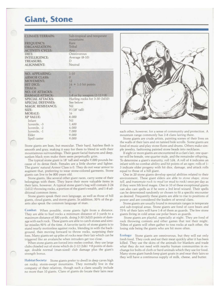 Stone Giant – TSR 2102 MC1 Monstrous Compendium