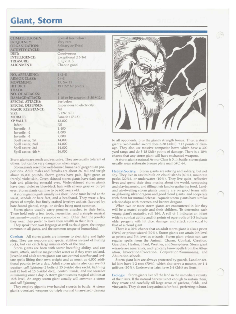 Storm Giant TSR 2102 MC1 Monstrous Compendium
