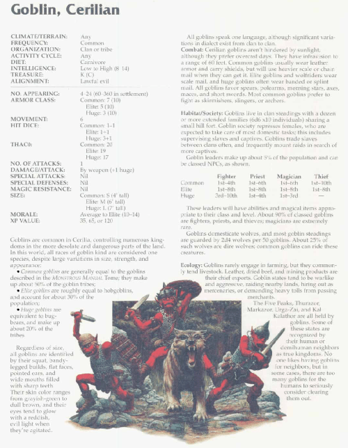 Cerilian Goblin – TSR 2166 Monstrous Compendium Annual Volume 3